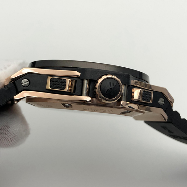 Bezel: Polished black ceramic, 6 titanium H-screws