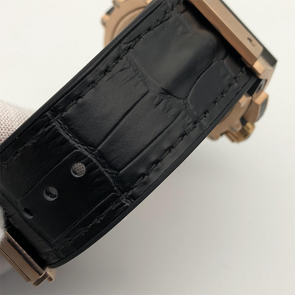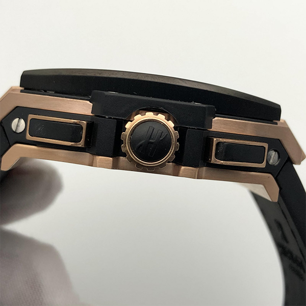 Bezel: Satin-finished, polished, microblasted black ceramic with 6 H-shaped titanium screws